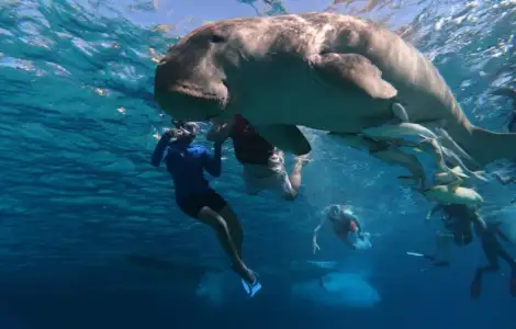 Le clou du spectacle reste sans aucun doute l’apparition du Dugong, aussi surnommé « vache marine ». Rare et protégé, ce mammifère marin timide a fait de cette baie son refuge.