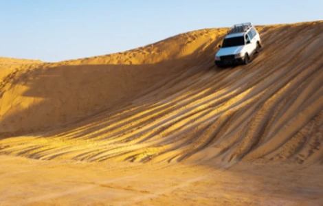 traversée spectaculaire dans le désert entre dunes et paysages sauvages.