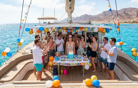 Célébrations personnalisées : Décoration du yacht pour un anniversaire, gâteau de fête ou musique de votre choix pour accompagner votre événement.